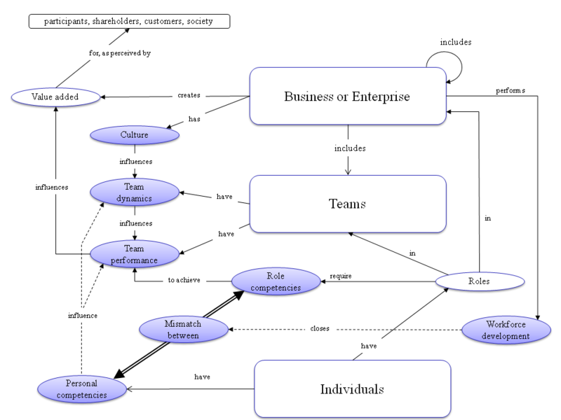 As shown in Figure 1 below, management action on workforce development will be required if there are systemic mismatches between the competencies required to perform SE roles and the actual competencies of individuals. The organizational culture may have a positive or negative effect on team performance and the overall value added by the business (see Culture).