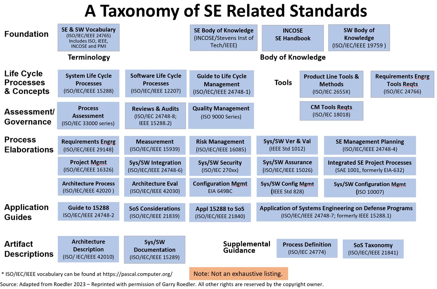 A Taxonomy of SE Related Standards (Adapted from Roedler 2023). Used with Permission.