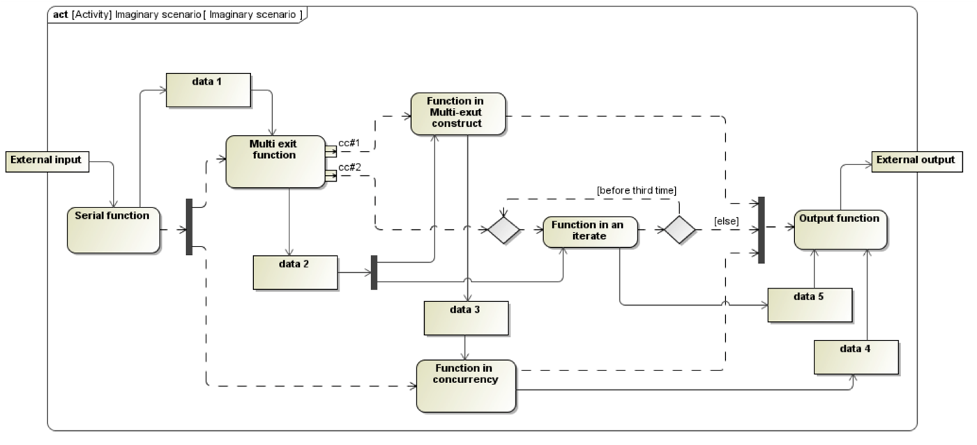Figure. Illustration of a scenario (Activity Diagram). SEBoK Original.