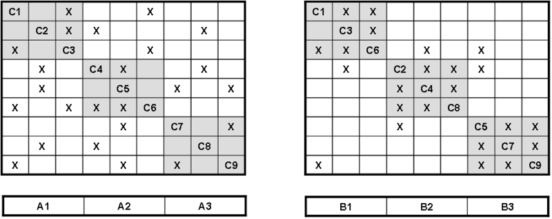Figure. Initial Arrangement of Aggregates on the Left; Final Arrangement After Reorganization on the Right. SEBoK Original.