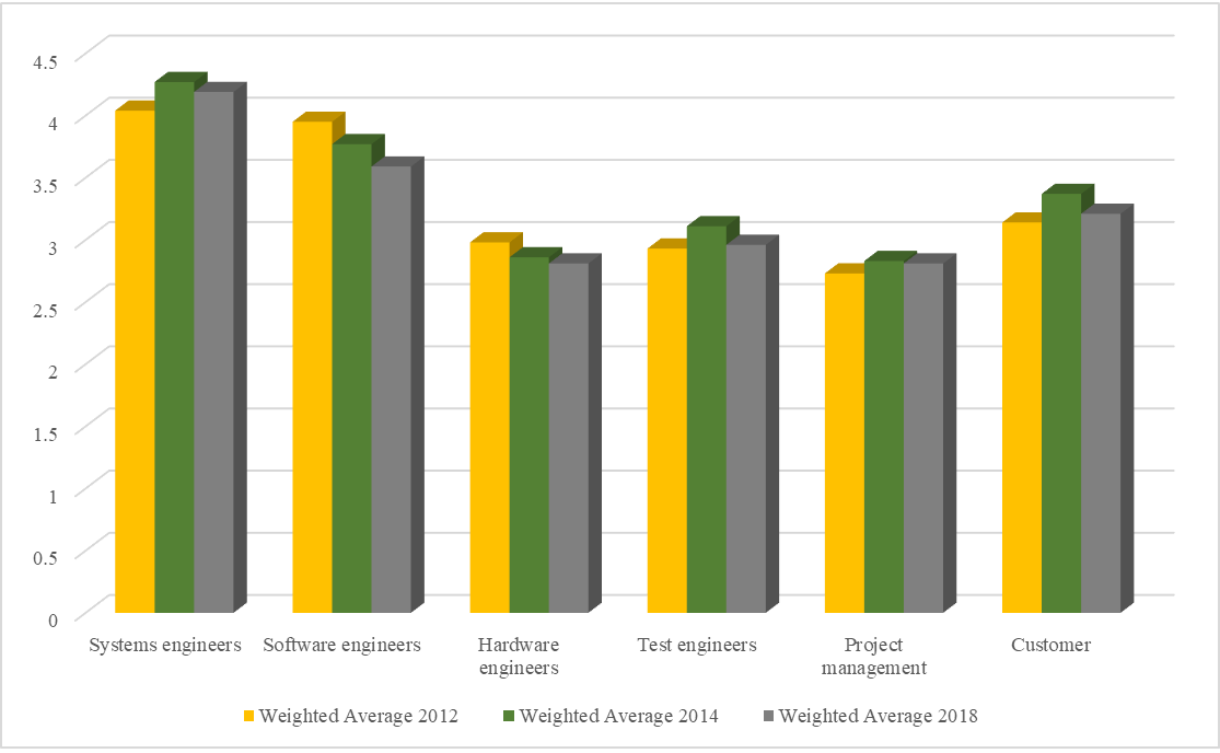 MBSE Adoption Trends article, Figure 7. From Cloutier, R. 2019a. "2018 MBSE Survey Results." Proceedings of the 2019 INCOSE MBSE Workshop, presented at the INCOSE 2019 International Workshop, 26-29 January 2019, Torrance, CA. Used with Permission.