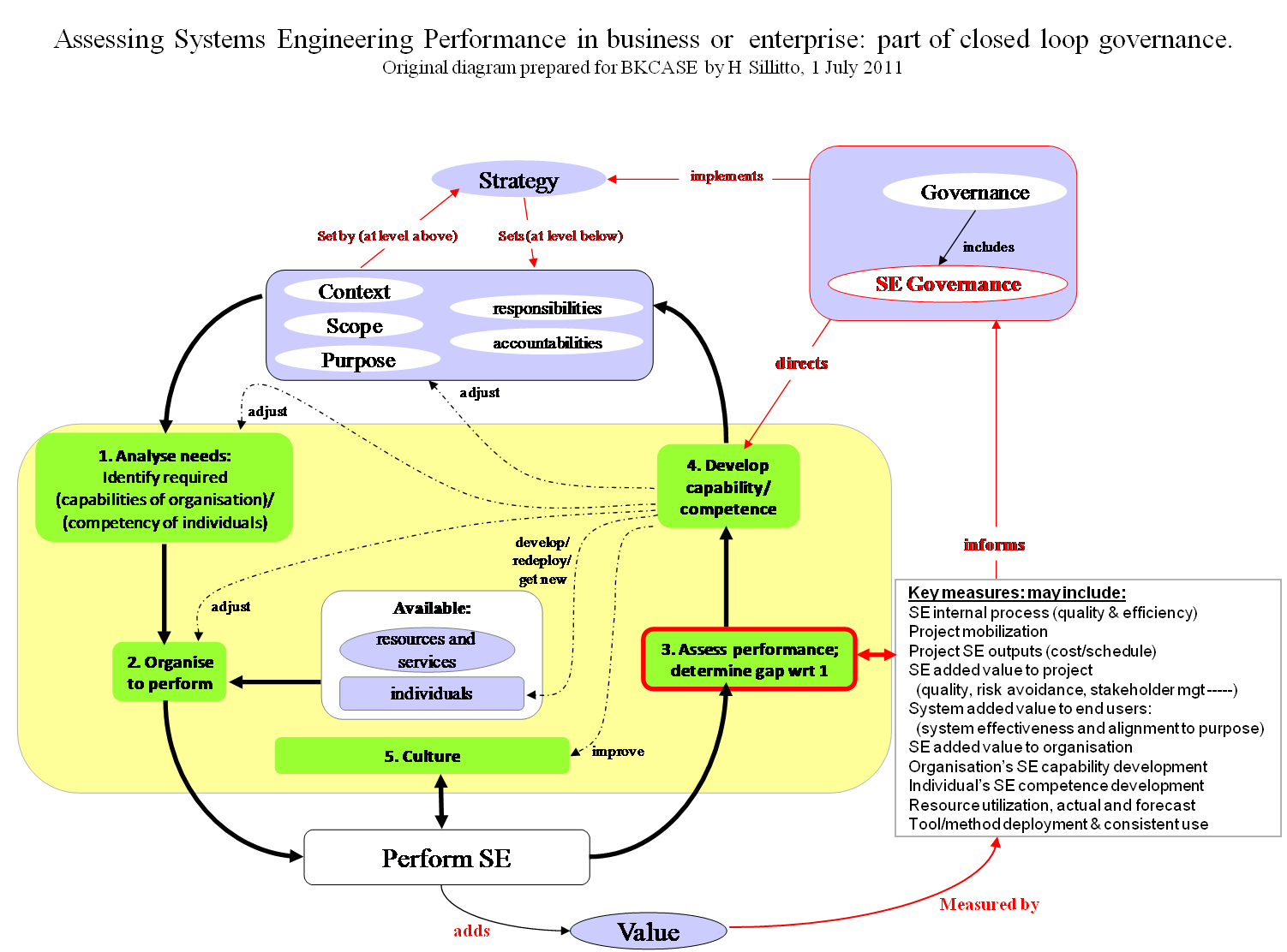 Figure. Assessing systems engineering performance in business or enterprise: part of closed loop governance. SEBoK Original.