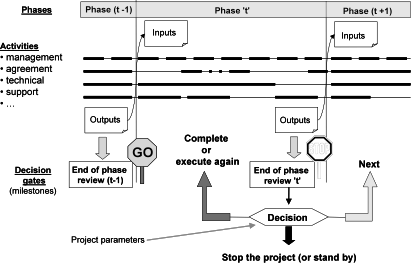 Program management employs phases, milestones, and decision gates which are used to assess the evolution of a system through its various stages. The stages contain the activities performed to achieve goals and serve to control and manage the sequence of stages and the transitions between each stage. For each project, it is essential to define and publish the terms and related definitions used on respective projects to minimize confusion.