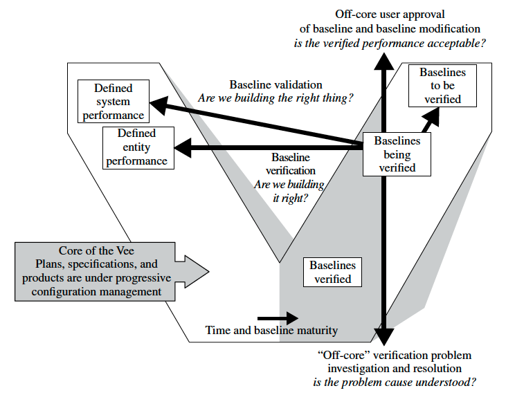 The sequential version of the Vee Model is shown in Figure 1. Its core involves a sequential progression of plans, specifications, and products that are baselined and put under configuration management. The vertical, two-headed arrow enables projects to perform concurrent opportunity and risk analyses, as well as continuous in-process validation. The Vee Model encompasses the first two life cycle stages listed in the "Generic Life Cycle Stages their purposes, and decision gate options" table of the INCOSE Systems Engineering Handbook: concept, and development (INCOSE 2015).